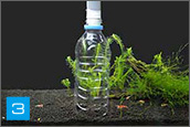 市販されている物や、写真1のようなペットボトルを使った自作のボトムクリーナーを使い、ソイルを吸い出さない程度の勢い (写真2のように指で調節)で、底床に詰まった不純物や崩れたソイルを水槽から水ごと吸い出します(写真3)。